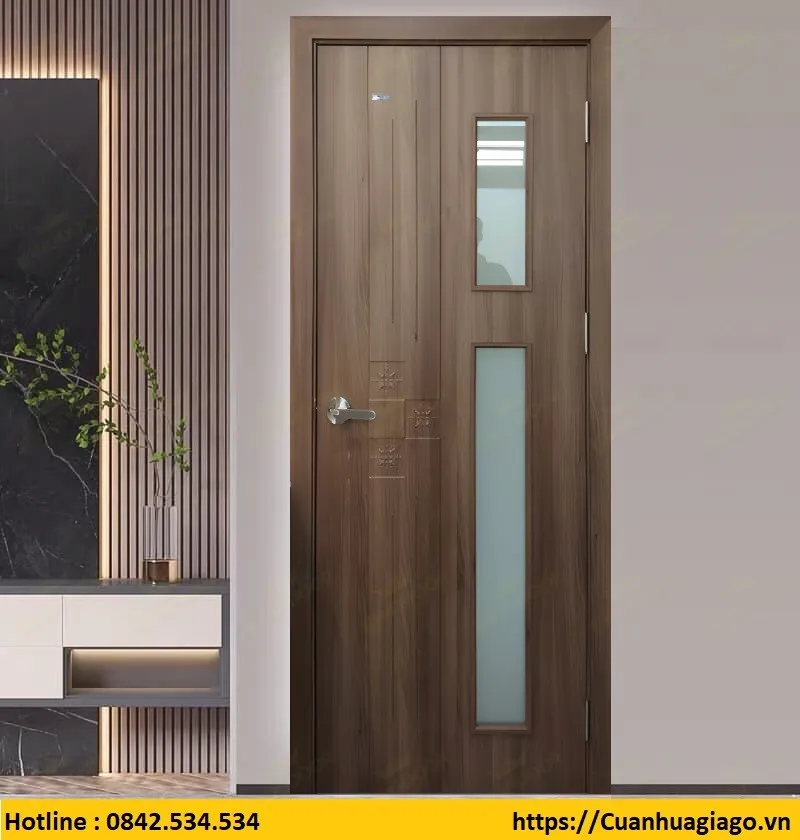 Cửa nhựa nhà vệ sinh có nhiều mẫu mã như : Mẫu cánh phẳng, mẫu chạy chỉ nhôm, CNC chạy huỳnh, Mẫu ô kính, mẫu ô nan chớp….
