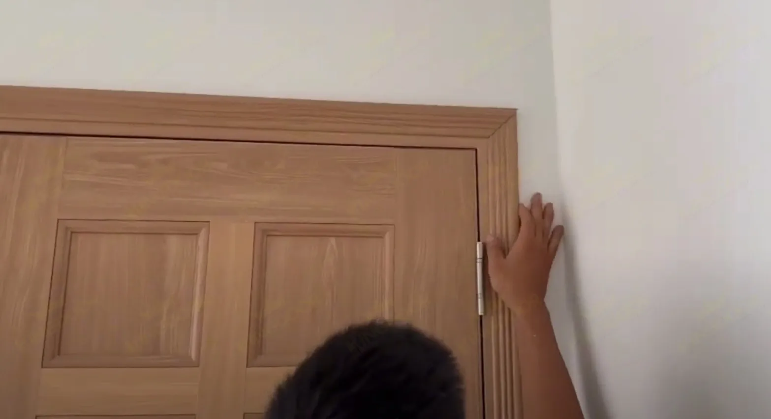 - Sau khi khung bao đã được cố định vào tường, mình sẽ bắt bản lề vào khung bao này. Sau đó dựng cánh lên để xác định được vị trí. Tiếp đó bạn bắt bản lề vào cánh sao cho khe hở giữa cánh và khung tầm 3mm.