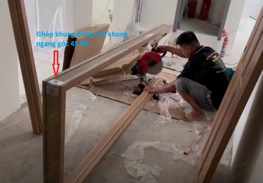 Bước 1: Kiểm tra và ghép khung bao góc 45 độ