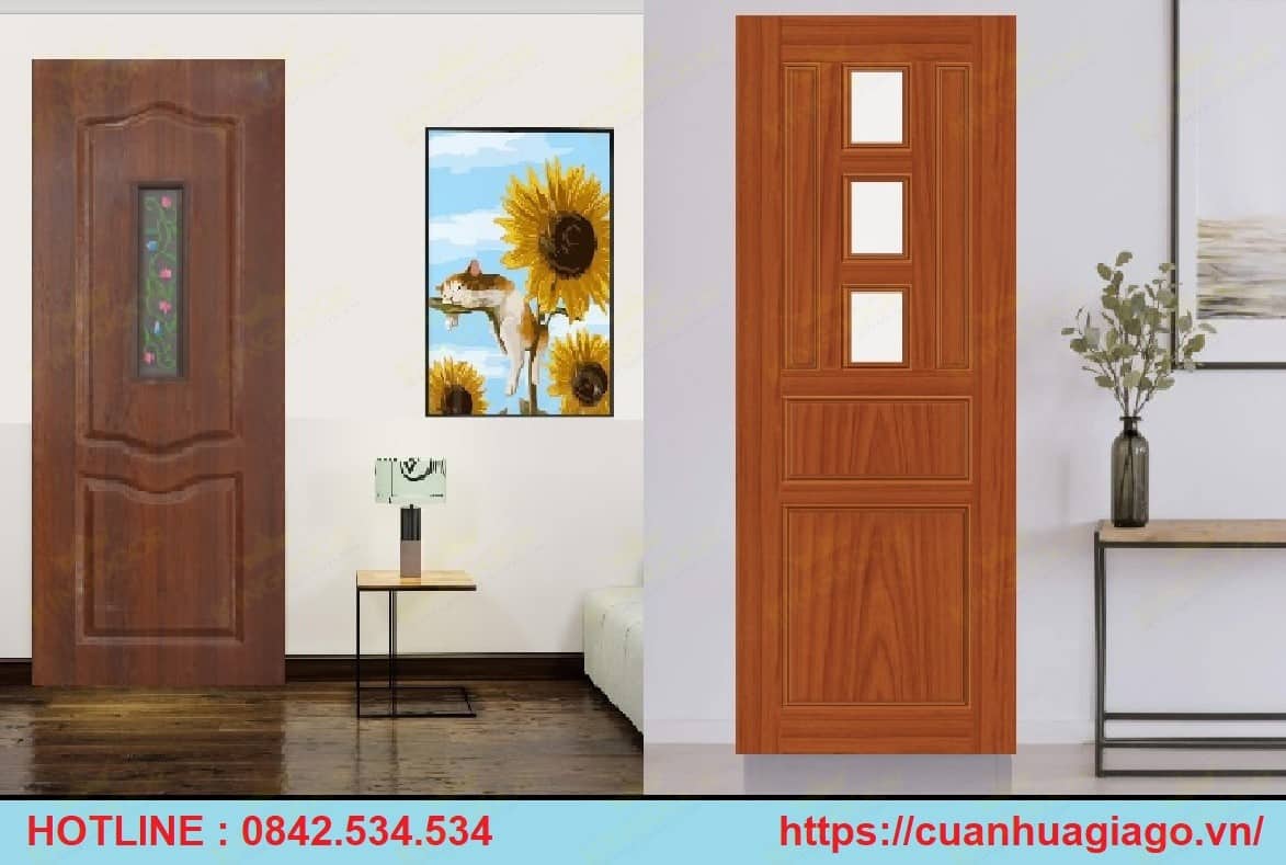 Hoàn thiện 1 bộ cửa gỗ phòng ngủ mdf laminate có ô kính : 6.365.000/ bộ