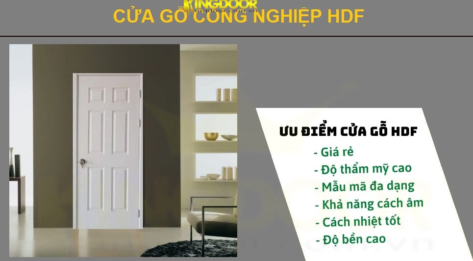 - Tính năng cách âm và cách nhiệt tốt: Với lớp HDF dày. Cửa gỗ HDF có tính năng cách âm và cách nhiệt tốt, giúp giảm thiểu tiếng ồn và giữ cho không gian đổ ấm áp.