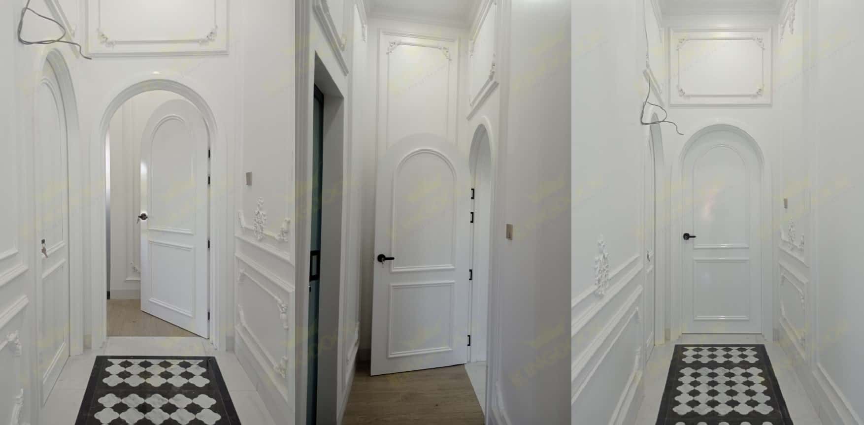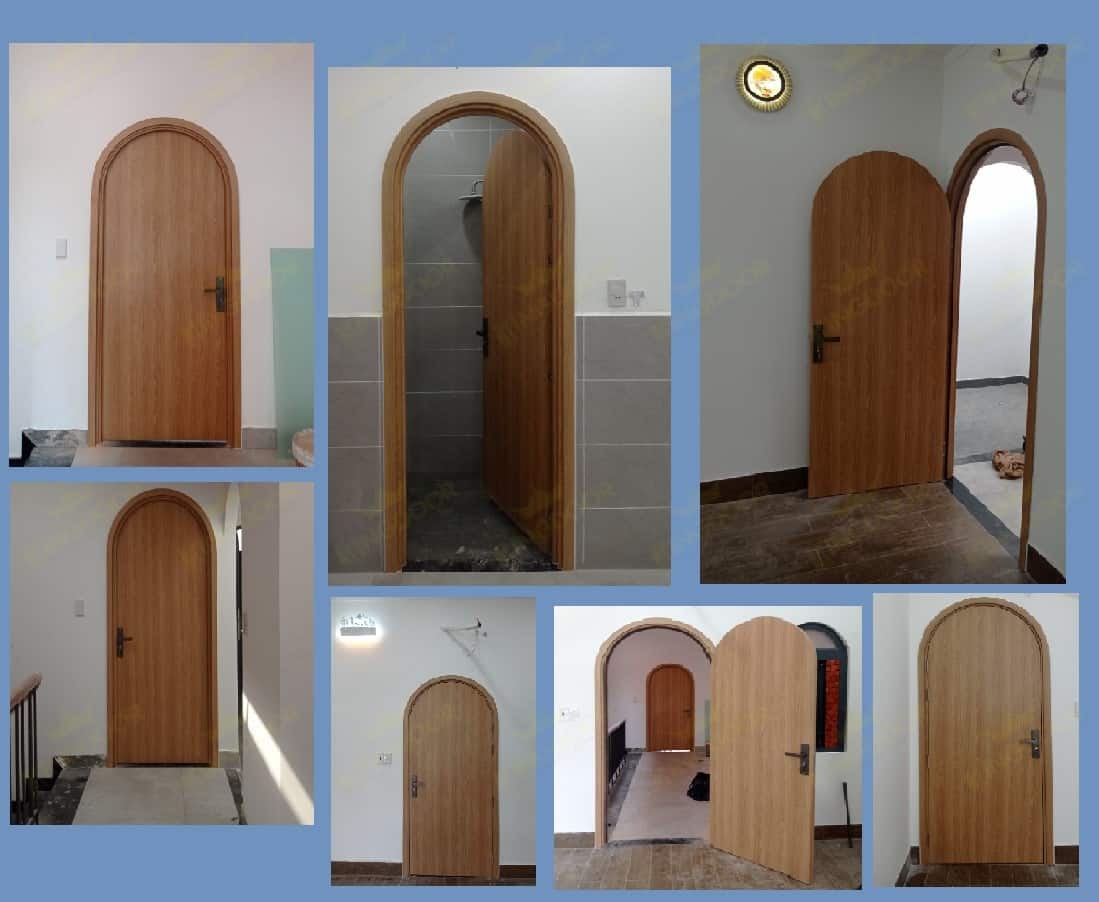 - Hoàn thiện 1 bộ cửa vòm composite : 6.370.000/ bộ gồm cánh , khung bao, Nẹp chỉ 2 mặt, khóa tròn gạt jelly đen, Nẹp chỉ nổi tân cổ điển trên 2 mặt cánh, bản lề , công lắp đặt hoàn thiện.