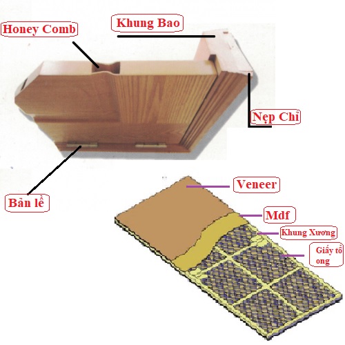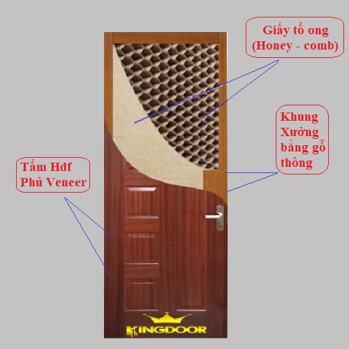 - Mặt cửa làm bằng tấm HDF hoặc MDF dày 3-6 mm
