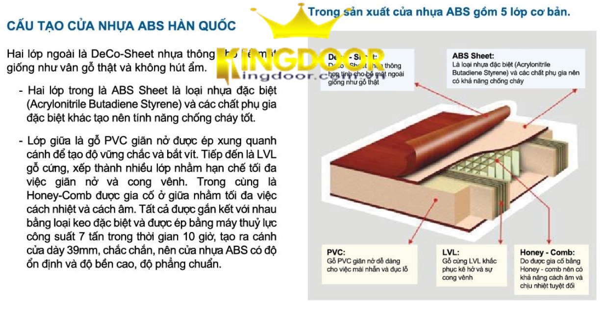 – Cửa nhựa abs hàn quốc được cấu tạo 5 Lớp